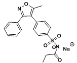 化學名:N-[4-(5-甲基-3-苯基-4-異惡唑基)苯基]磺?;鵠丙酰胺鈉鹽 分子式:C19H17N2O4SNa 分子量:392.41 分子結構式: 用途:鎮(zhèn)痛 包裝:1.0KG/鋁箔袋 產品標準:工廠規(guī)格
